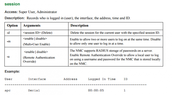 Ist man dann mit der Notstromversorgung über Telnet verbunden, so können wir uns über den Befehl „session“ die aktuellen Verbindungen anzeigen lassen!